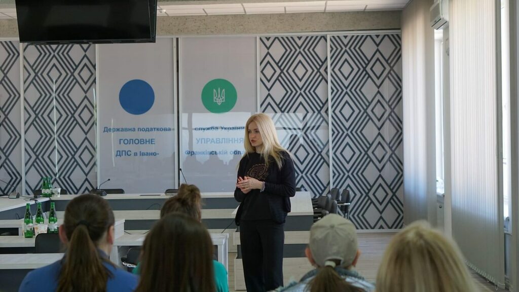 Фахівчині податкової служби Ольга Волкова та Мар’яна Мороз поділилися своїми знаннями про особливості діяльності податкової служби, розкривши перед студентами структуру її роботи та наголосивши на важливості сплати податків для суспільства в умовах військового стану.