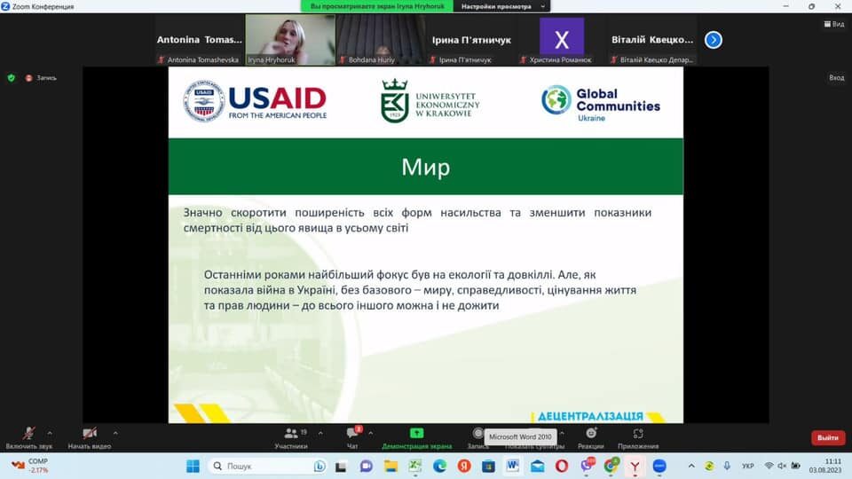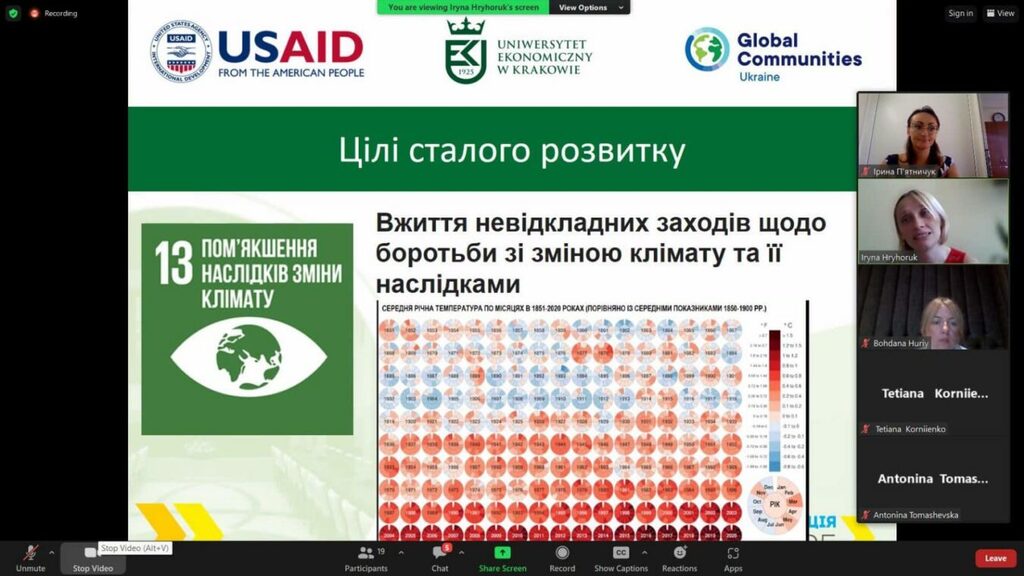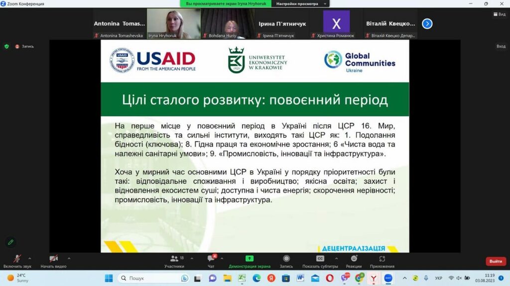 Доцент кафедри управління та бізнес-адміністрування Ірина Григорук в межах грантової Програми USAID «Децентралізація приносить кращі результати та ефективність» (DOBRE) провела 2 онлайн-вебінари: «Цілі сталого розвитку та публічне управління в умовах кризи» та «Біоекономіка та управління відходами».