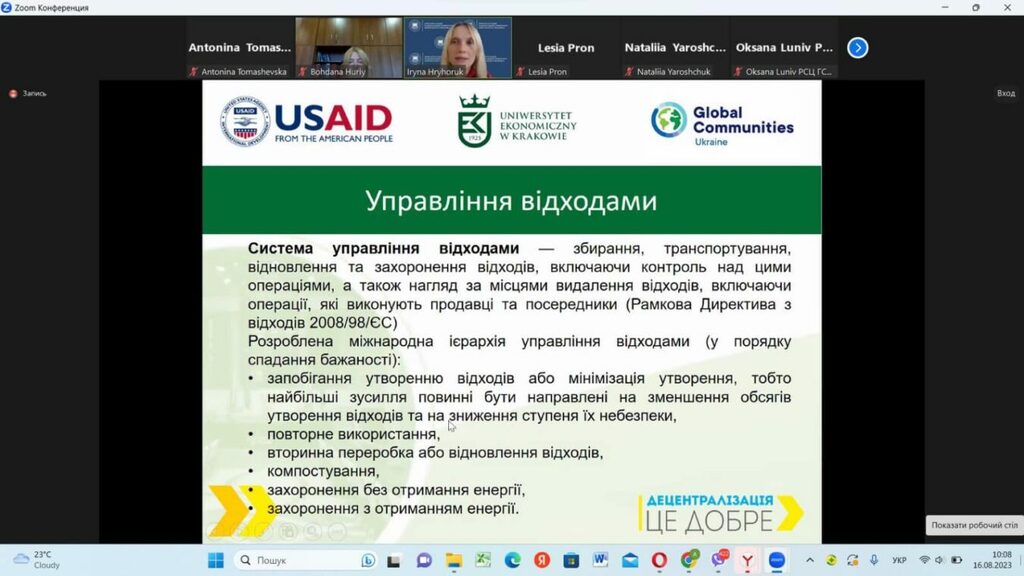 Також було окреслено основні позитивні та негативні практики управління відходами та які стратегії і механізми можуть бути використанні у громадах України.