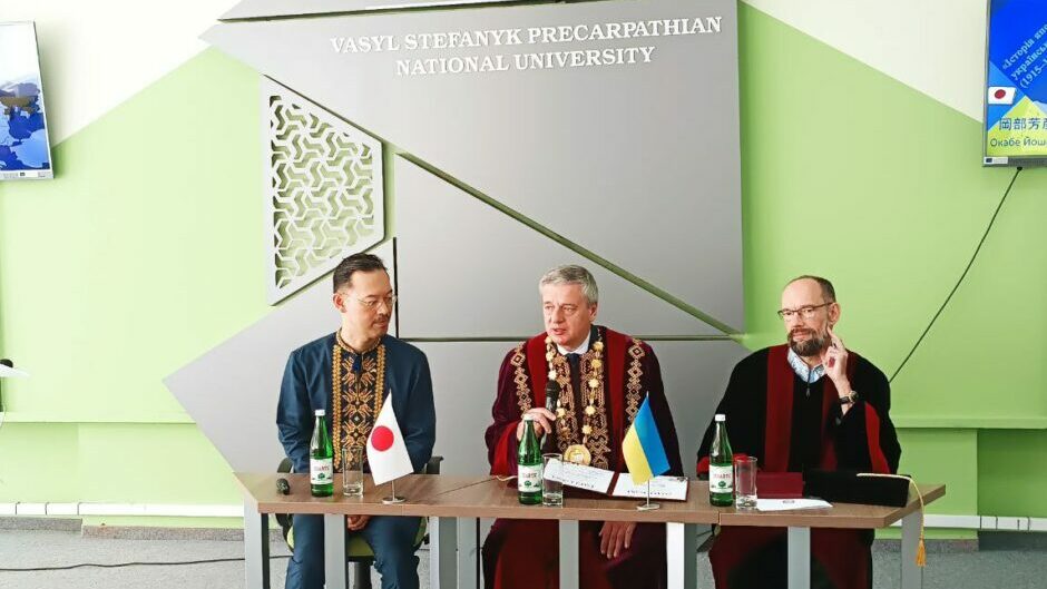 В свою чергу японський професор подякував університету за співпрацю та нагородив грамотами та відзнаками ректора Прикарпатського університету Ігоря Цепенду та першу проректорку Валентину Якубів.