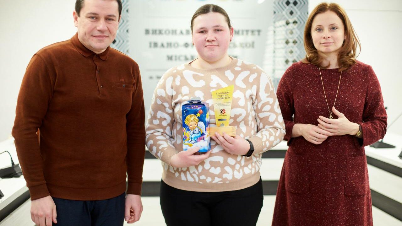 Вітали та вручали памʼятні статуетки співголови стипендіальної комісії, заступник міського голови – директор Департаменту освіти та науки Івано-Франківської міської ради Вікторія Дротянко та заступник міського голови Левицький Олександр.
